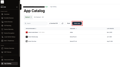 Delay: Adjusts the deferral period (in hours) between update rings. The initial ring is set to 24 hours after the vendor releases an update, during which the Devicie team tests a new app version.