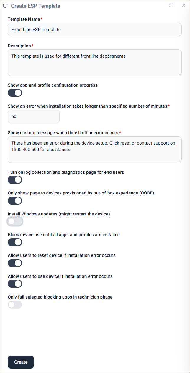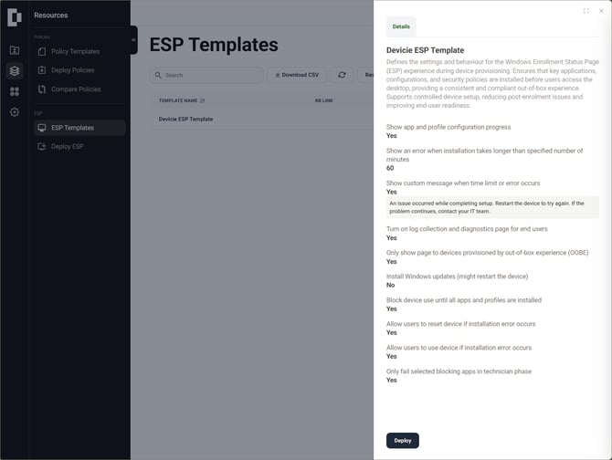 This article guides you through creating and managing a new Enrollment Status Page (ESP) through the Devicie portal, utilizing templates for efficient deployment, and ensuring consistent management.