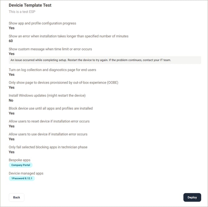 The Devicie portal allows you to create managed ESPs to benefit from automatic drift remediation (reverting unauthorized changes made in Intune) and to keep back-catalog apps updated to the latest version automatically.