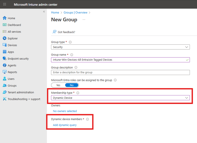 The second group will be named: Intune-Win-Devices-All EntraJoin Tagged Devices