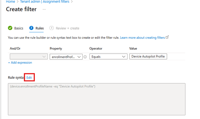 (device.enrollmentProfileName -eq "Devicie Autopilot Profile")