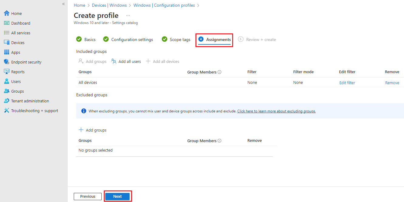 1. Navigate to Microsoft Intune portal, select Devices then select By platform: Windows then select Configuration profiles.
