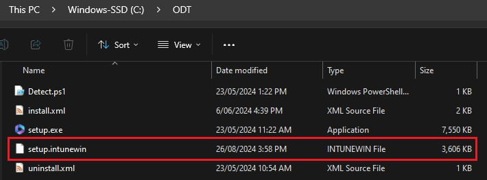 By navigating to C:\ODT, you will see the following: