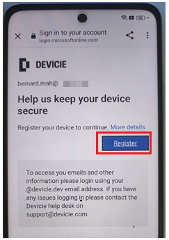 4. It will then display "This device belongs to your organisation", select Next.