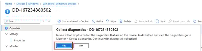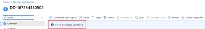 It will show up with "Collect diagnostics pending" - this is dependentpendant on whether the device is online.