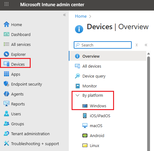 Navigate to https://intune.microsoft.com/, Select Devices then click on By platform then click on Windows