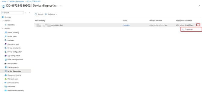 Go to Device Diagnostics tab on the left hand column, then select on the 3 dots then select Download.