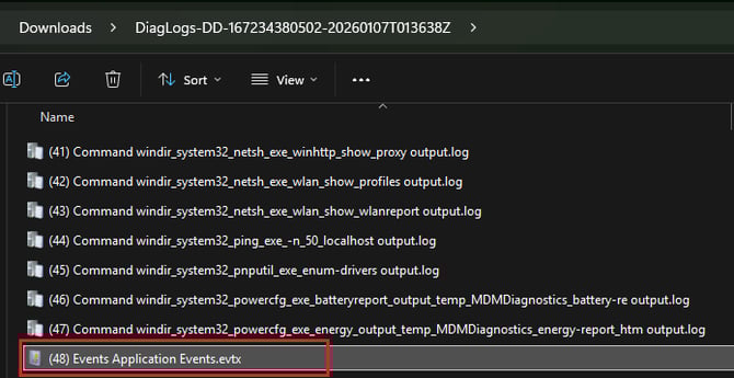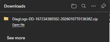 This will download the DiagLogs-Hostname-Date.zip like as per screenshot, extract it and open the files.