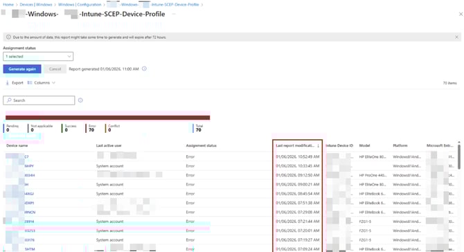 Once the relevant network or systems team renew the SCEP certificate, time to re-test the pre-provisioning or user driven process again. Certificates is now showing (1 of 1 applied).