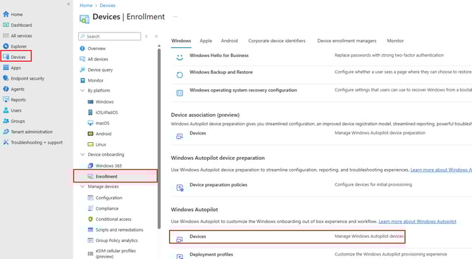 1. Navigate to https://intune.microsoft.com/ then select Devices then select Enrollment then select Devices