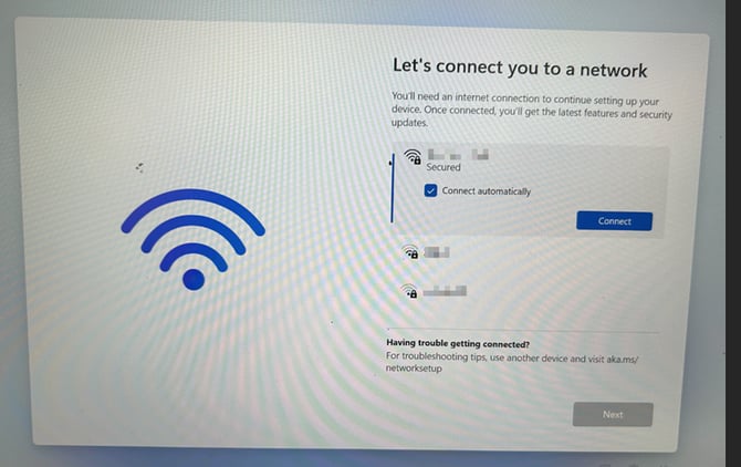 6. If you are wired in a network cable, ignore this step. If you need to be prompted for Wi-Fi – click the appropriate Wi-Fi profile and connect to it.