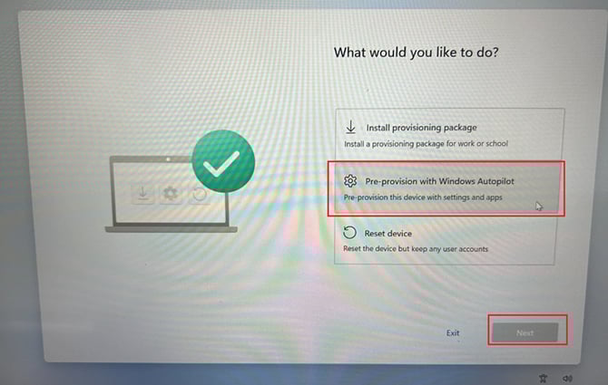 9. Next select Pre-provision with Windows Autopilot then select Next.