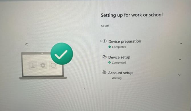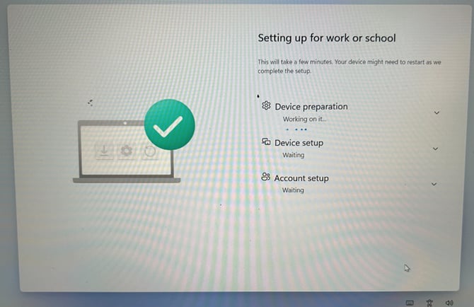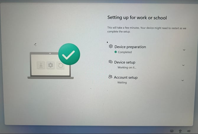 Under Device Setup, it will check to make sure the policies apply this is usually a 3 to 5 minutes way for to do it’s checks to ensure the policies align.