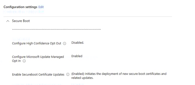 Enable Secureboot Certificate Updates = Enabled (Devices can receive updated Secure Boot certificates via Windows Update).