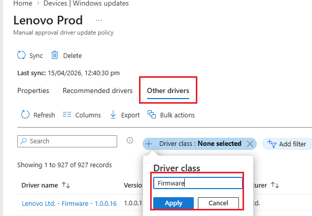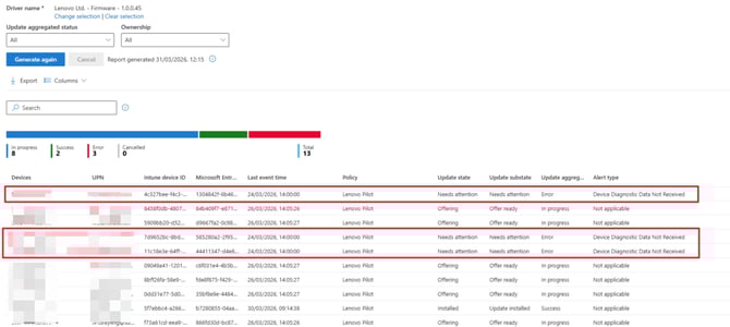 To ensure you do not see the Alert Type: Device Diagnostic Data Not Received when checking firmware updates in Reports for drivers. Ensure to read below to deploy the 'Allow Telemetry' to all Devices.