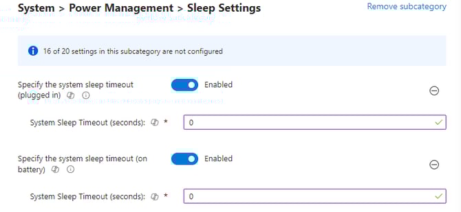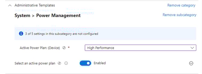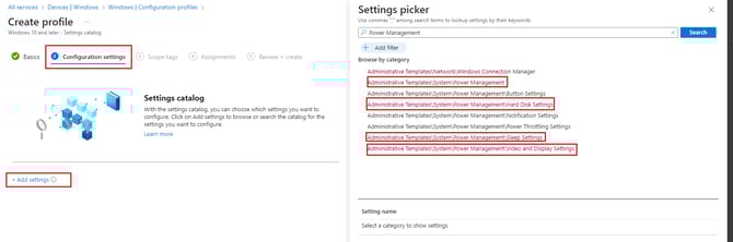 3. Under Configuration Settings tab, select Add Setting. In the search for a setting, enter in: Power Management.