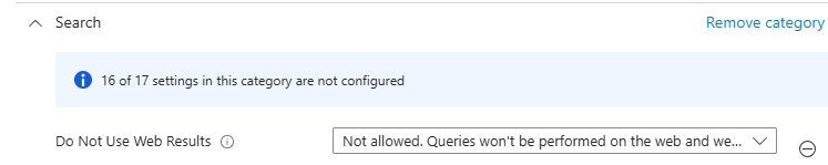 - Do Not Use Web Results as Not allowed. Queries won't be performed on the web and web results won't be displayed when a user performs a query in Search.