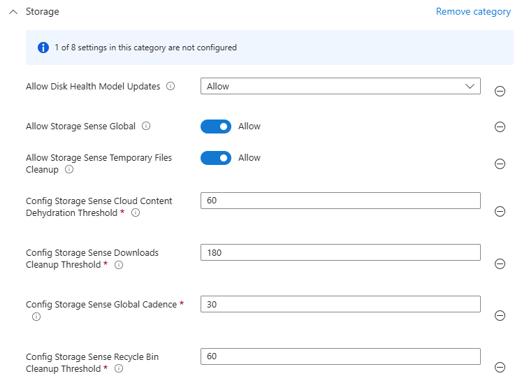 - Config Storage Sense Recycle Bin Cleanup Threshold as 60