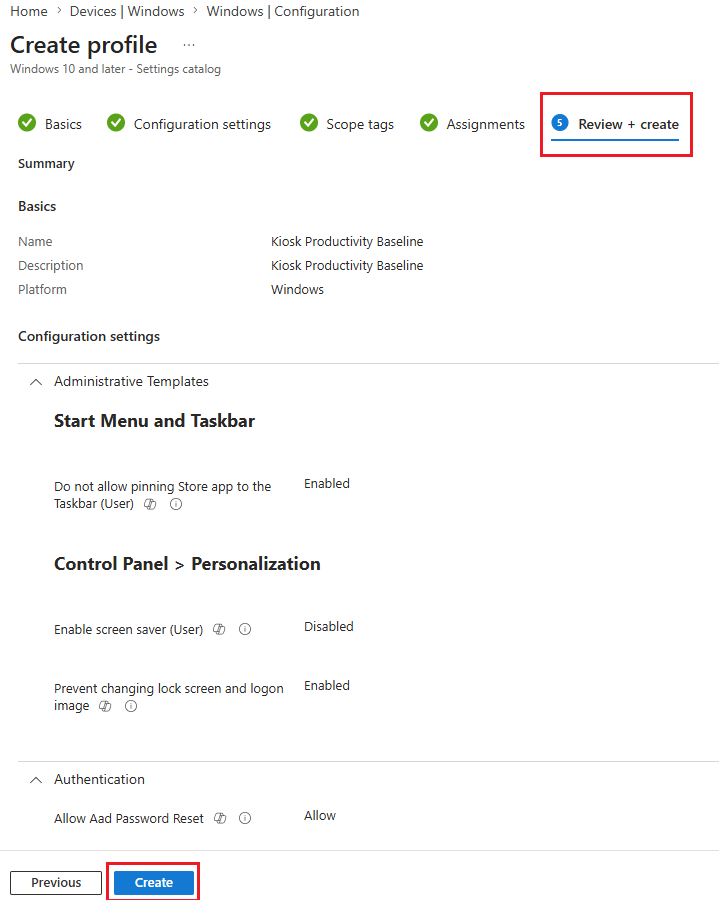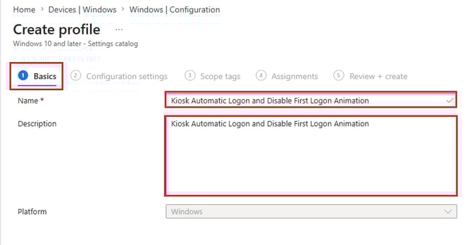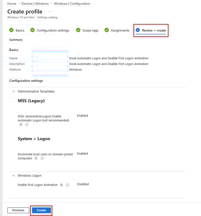 Create Device Configurations: Automatic Logon and Disable First Logon Animation