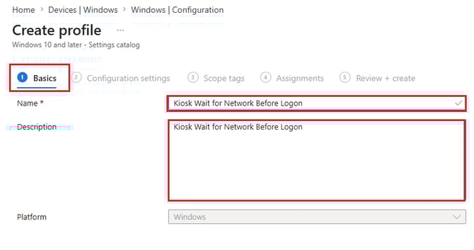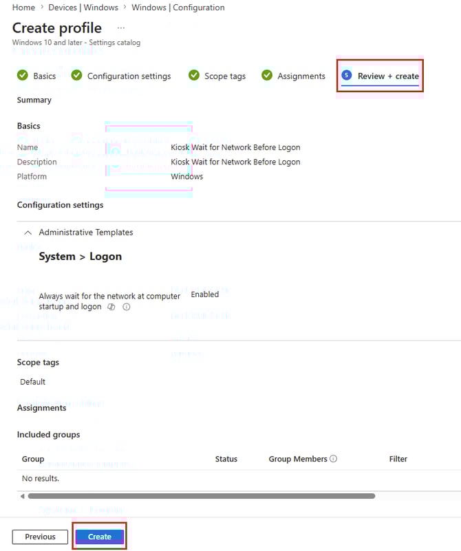 Create Device Configurations: Kiosk Wait for Network Before Logon