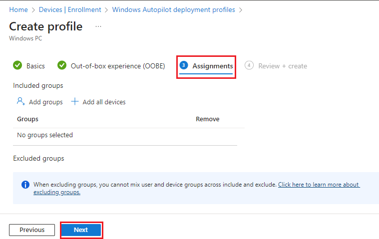 5. Under Assignments, select your desired Kiosk Group. Then select Next.