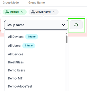 Note: Devicie will poll your Intune tenant to bring in all available groups and filters. If you need a new group or filter, you can create this in your tenant and then use the refresh button to pull in a fresh list to select from without losing your place in the wizard.